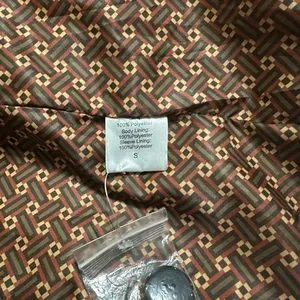 NWT Harry Brown London Salmon Coat on a size Small. It is gorgeous, fabric outstanding. It is polyester. I couldn’t believe it. It has 2 outer and one interior pocket. Beautiful lining. Shoulder to Shoulder is approximately 18”, Armpit to Armpit is approximately 20” and Base of the collar to the. Hem is approximately 33.5”. It is a small men’s but it can fit a woman. Size Medium. The quality is superior. I consider this a unisex coat! It would fit a woman’s medium. Questions please ask.