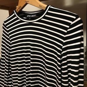 Style Mafia Black White Stripe Poppy Bell Sleeve Shirt Medium