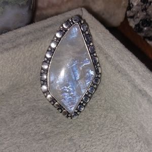 Rainbow Moonstone Statement Ring Size 9