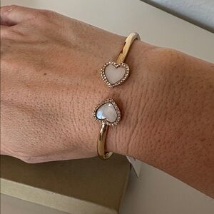 TAHARI Gold/ Mother of Pearl Cuff with CZ stones around hearts