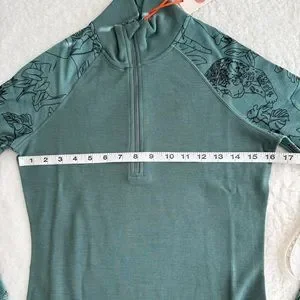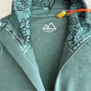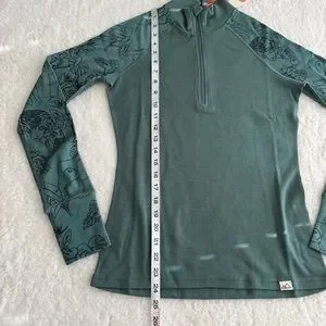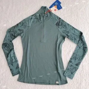 Wild Rye Hailey Half Zip Green Long Sleeve Women's Top, 100% Merino Wool, Size 4