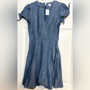J. Crew Size 0 Denim Chambray Faux Wrap Ruffle Dress Tie Bow Cap Sleeves
