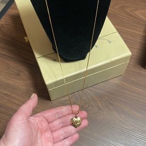 Beautiful heart pendant necklace stamped Copper Craft Guild. Features a delicate floral design on both sides of the heart. Chain measures 29” and pendant is a little over 1”.