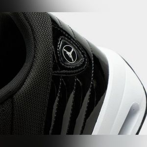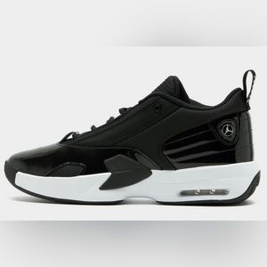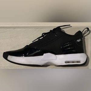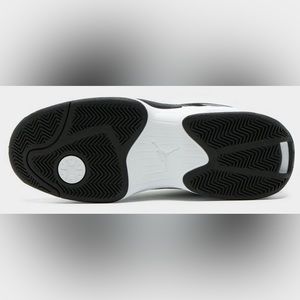 Pre-owned. Gently used. Level up your kick game in hoops-inspired style with these men's Max Aura 6 sneakers from Jordan. In a Black colourway with White details, these basketball shoes are cut from smooth leather with breathable textile for a premium feel and durable wear. They feature a lace fastening to lock you in, with a padded collar that uses extra plastic for support. Underfoot, they sit on a chunky Nike Air-Sole unit for a cushioned, springy step, with a grippy rubber outsole that delivers total taction. Finished up with classic Jumpman branding.