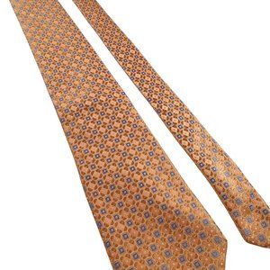 Eagle Shirtmakers All Silk Orange Blue Geometric Pattern Men Designer Necktie