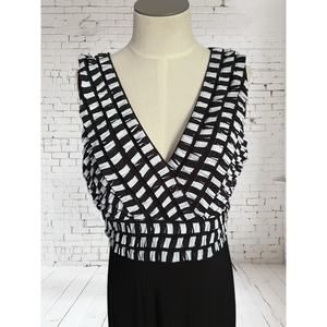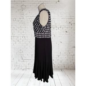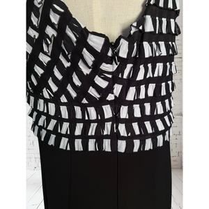 Joseph Ribkoff Dressy Pleated Ruffle Black & White Career Midi Dress Size 12