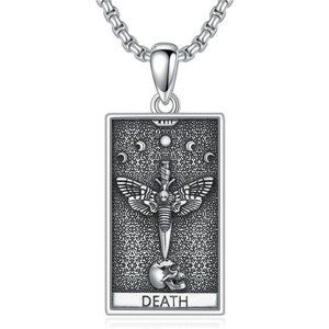 The Death Tarot card signals that one major phase in your life is ending, and a new one is going to start. Death moth signifies an upcoming opportunity or a warning for the future. Featuring a death moth, a skull and moon phases, this Death Tarot card necklace is chic and unique. Surprise your loved one with this skull necklace!