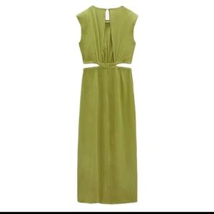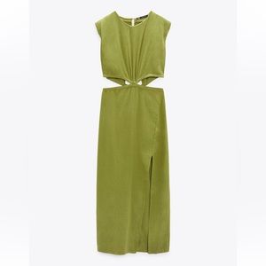 🔥 Zara Cutout Midi Dress - Olive Green - Linen