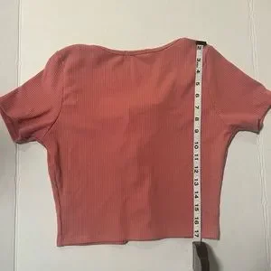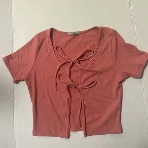 Elevate your style with this chic pink tie-front top. Perfect for any occasion, this top offers a flattering fit and a trendy design.