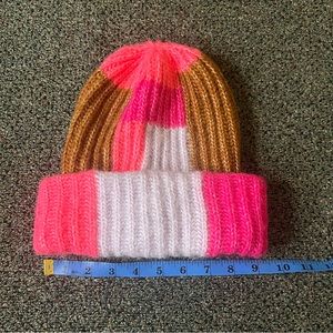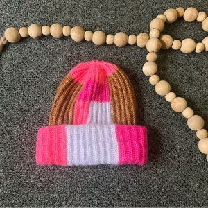 WILD FABLE Colorblock Neon Pink & Brown Chunky Knit Beanie Winter Hat Accesory