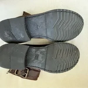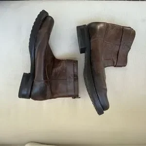 These Frye ankle booties feature a rich brown leather with a vintage, textured finish, offering a relaxed and slouchy style. The soft, flexible leather ensures comfort, while the inner zipper closure provides easy wear. Perfect for casual, everyday use, these booties combine style and practicality.