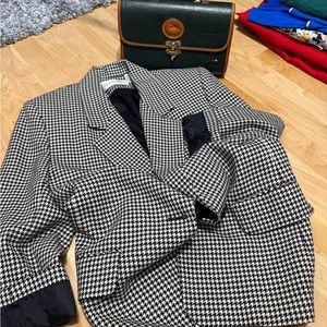 Elevate your style with this timeless black and white houndstooth coat. Perfect for any occasion, this coat offers both elegance and comfort.