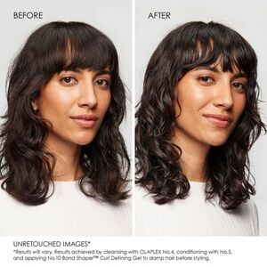 No. 10 Bond Shaper™ Curl Defining Gel helps revive natural curl patterns in wavy and curly hair. This humidity-resistant, anti-frizz curl gel gives flexible hold for soft, smooth, hydrated, healthy-looking curls without that crunchy feeling. OLAPLEX Bond Building Technology™ strengthens curl-forming bonds.