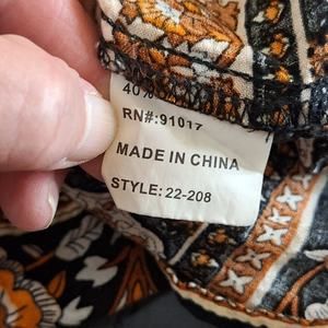 Solitaire Shirt Women's XL Black Orange Floral Bohemian Peasant Lightweight
