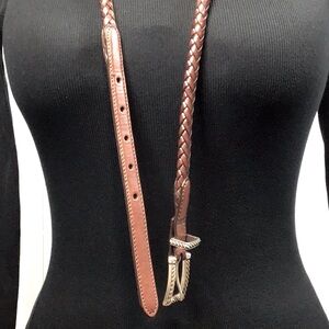 Talbots Elegant very fine round braided dark brown genuine leather belt. Western equestrian style can be worn around the waist or hips. With jeans or loose fitting blouse, Perfect for any outfit.