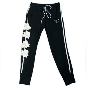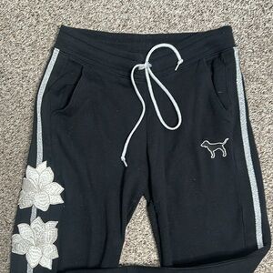 Pink victory secret black emboridry fleece lining jogger size SP black …