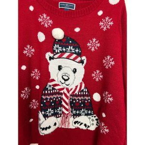 Karen Scott Ugly Christmas Sweater 2X Teddy Bear Scarf Snowflakes