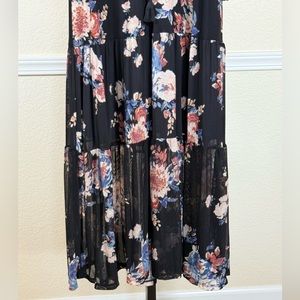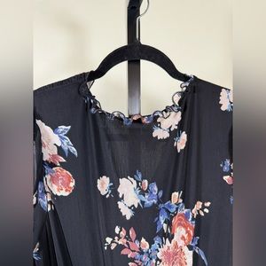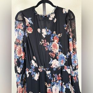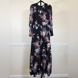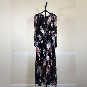 American Rag Large Black Floral Dress Sheer Sleeve Boho Maxi Vintage Chic Long