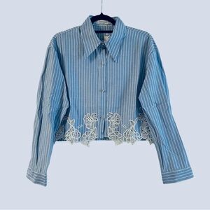 NWOT Embroidered Pinstripe Rhinestone Buttons
