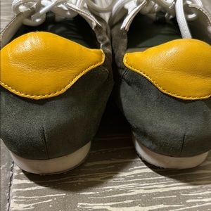 Tory Burch Olive and White Sneakers with Yellow Detail