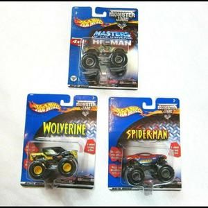 Lot of 3 Vintage Hot Wheels Monster Jam Wolverine, Spider-Man & He-Man 1:64 NEW