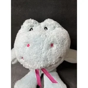 Sugar Loaf Light Blue Frog Plush With Pink Bow Stuffed Animal Lovey Toy