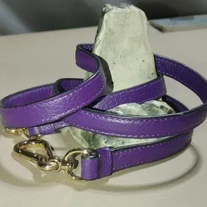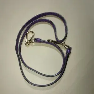 This Coach crossbody strap in purple leather is designed with gold hardware and an adjustable length, offering a stylish and functional upgrade.