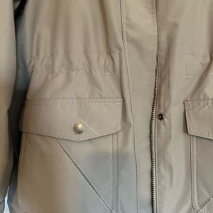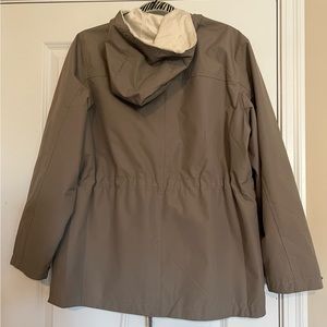 NWOT. Size Medium, Natural Reflections taupe hooded jacket soft lining and front pockets.