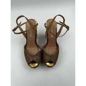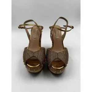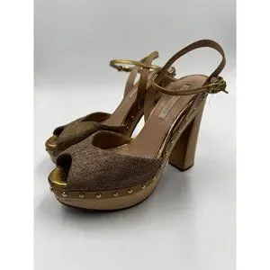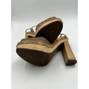 Pura Lopez Size 36 Studded Heeled Sandals Pumps Platform Wooden Chunky Heel Shoe