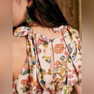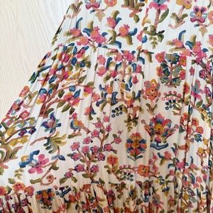 Sezane Dolce Dress Maxi Villa Print Tree of Life Floral Bird Ecru Size 44 US 12