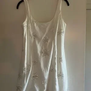 Waimari Amelia Floral Sequined Linen-Blend Minidress (Size Small). Removed tags but never worn! Bought for a bridal event and went a different route. True to size, very flattering.