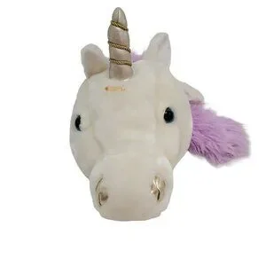 Good Condition Plush Unicorn Hat With Purple Mane & Gold Horn with sounds