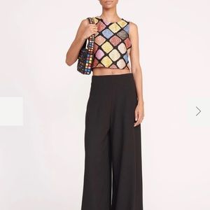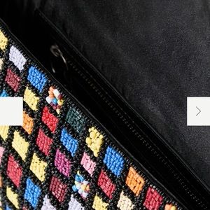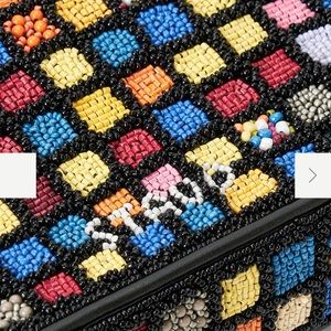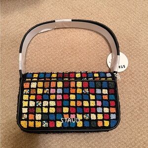 The iconic Staud Tommy Shoulder Bag is a gorgeous showstopper in vibrant Dance Floor, featuring a playful color-blocked design hand-beaded all over in small colorful squares & outlined in black. Elegant, bright & strikingly beautiful, it is destined to become your favorite bag for all occasions. Easy to dress up or down with your favorite accessories & guaranteed to bring compliments. With a beaded shoulder strap, flap top with dual magnetic closure, inside zipper pocket, interior satin lining, magnetic-fastening back slip pocket & 100% vegan leather trim. A new Staud dust bag is included with the purchase. 10" wide x 6" high x 2.4" deep, with an 8" strap drop. Sold out, very hard to find. NWT