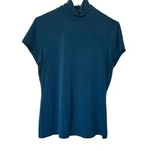 Alfani Wms Mock Neck Teal Blue Jersey Knit Top Size M Layering Minimalist Career
