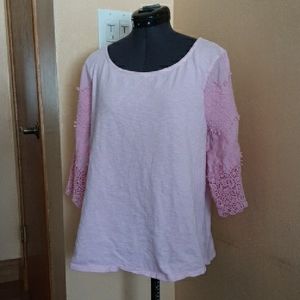 Talbots Women's Boho Pink Lace / Crochet Sleeve Top, sz L