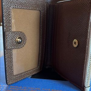 Essential Billfold Wallet • This Coach wallet features a sleek cream design with luxurious gold accents, perfect for keeping your essentials organized. Crafted from high-quality materials, it combines style and functionality in a compact form.