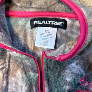 Great condition Realtree fleece jacket. Girls’ XL 14/16, no holes or stains. One small flaw on thumb hole trim as pictured. Perfect camo for your girl!
