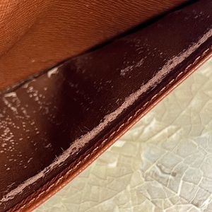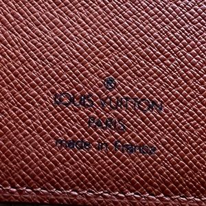 LV good condition long wallet. Date code CT1916, November 1996 in France. The outside and inside is beautiful and very clean…no scratches. The only callouts are the little tear on one end…see pictures and the rubbing on the inside compartments. No stickiness or bad smells. Smoke free home. Great for a checkbook cover.