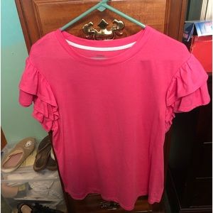 Crown & Ivy Pink Ruffle Sleeve Top NWOT