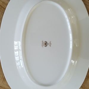 Noritake Pacific Majesty Oval Serving Platter. Bone China. Design features white center with white shells and rope on pink marble rim with gold trim. Discontinued piece. New unused condition. See photos for details.