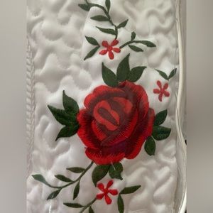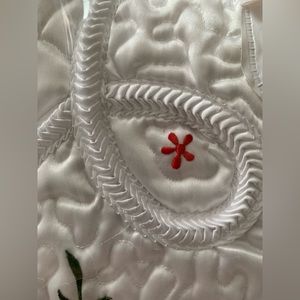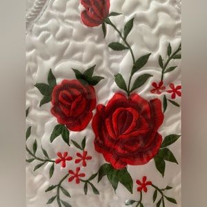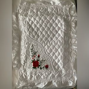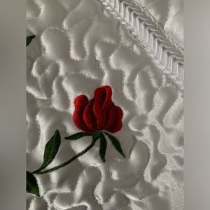 New Red Roses White Satin Embroidered Quilted Bedspread Full Double