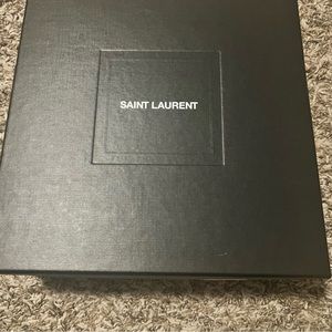 A tonal YSL logo dominates the front of this strappy calfskin sandal set on a sky-high stiletto.