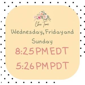 I’ll have 3 live posh show each week on Wednesday, Friday and Sunday at 8:25 pm EST that’s will be 5:25 pm PST.
