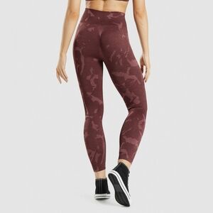 Great condition Gymshark adapt camo savanna cherry brown scrunch butt seamless leggings in women's size large. Only worn once, basically brand new.