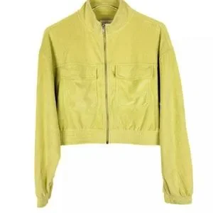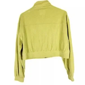 Aerie Groove On Velour Full Zip Cropped Jacket in Lime. Size XXL. New without tags. Has never been worn. Full zip closure mock neck banded cuffs and hem chest pockets with flaps.
