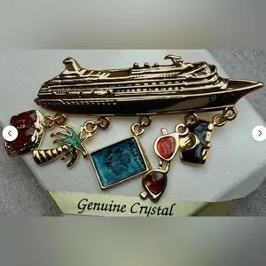 Vintage Jennifer Moore CRUISE SHIP Genuine Crystal Brooch Pin