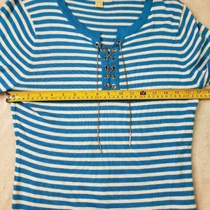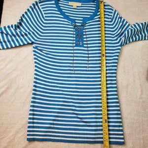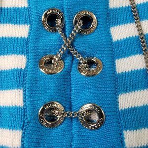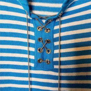 Michael Kors Womens Striped Long Sleeve Sweater Chain & Eyelet Detail Size M