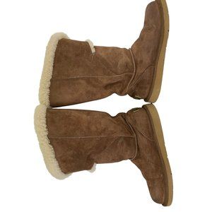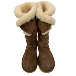 7 UGG Womens Tall Brown Messenger Pocket Shearling Boots Buckle Detail 8587