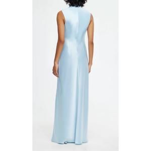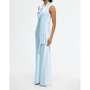 Elevate your wardrobe with the Acler Jeffries Maxi Dress in Light Cornflower, a stunning piece designed for the modern woman. This sleeveless satin dress in a fit and flare silhouette offers elegance and sophistication. Featuring a pleated neck drape and a center back invisible zip closure, it beautifully enhances your figure while ensuring ease of movement. Crafted without lining, this dress embodies a lightweight and graceful appeal, perfect for any occasion.