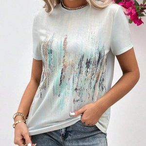 Shein Top Medium 6 Pastel Green Women's Graphic Tee Short Sleeve Shirt Tiedye